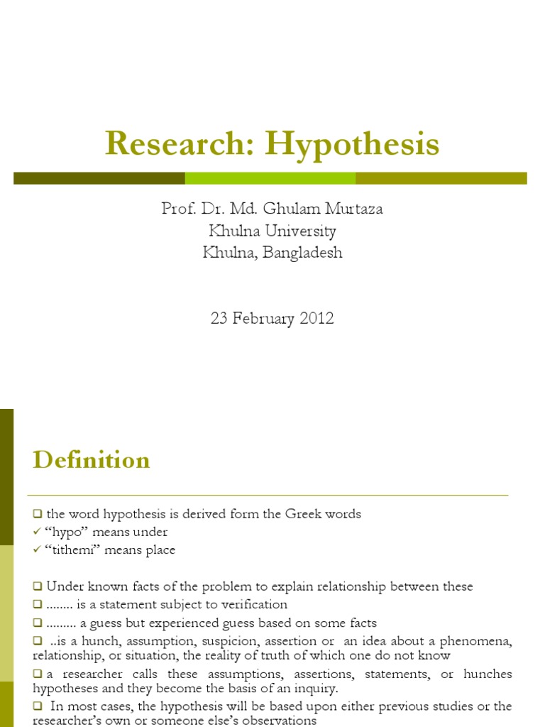 Research is conducted in order to determine the acceptability (or otherwise) of hypotheses.